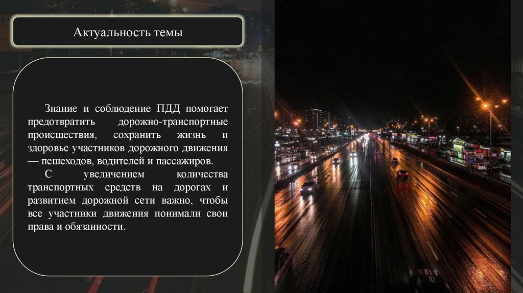 Актуальность темыЗнание и соблюдение ПДД помогает
