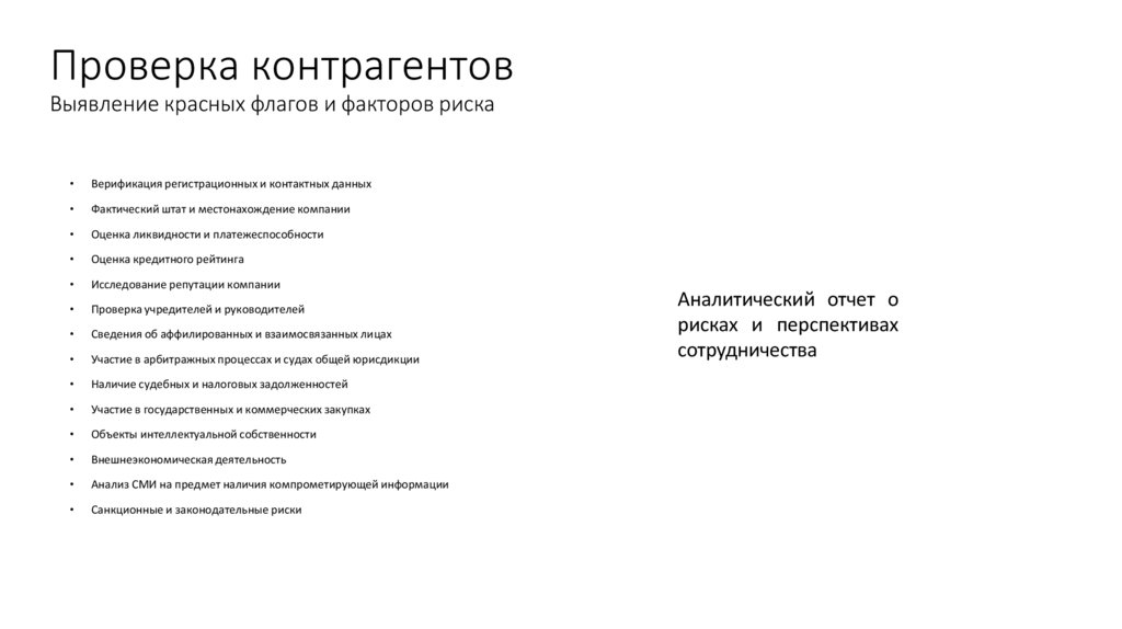 Проверка контрагентовВыявление красных флагов и факторов риска