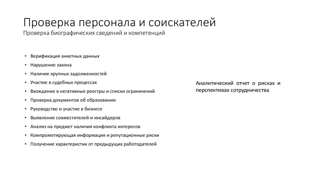 Кадровая безопасность и комплаенс-контрольПроверка персонала и соискателей. Контроль прозрачности и эффективности