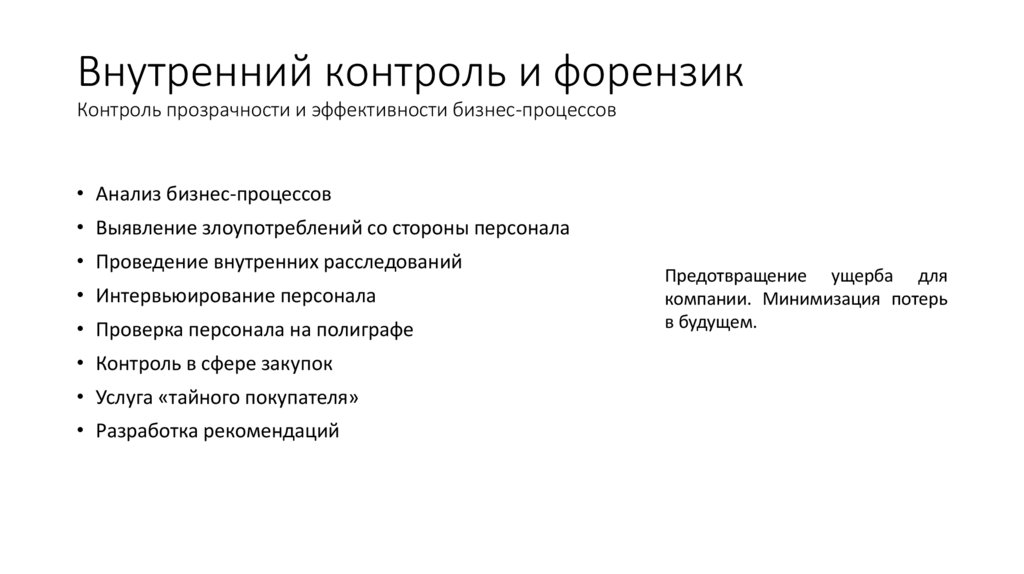 Внутренний контроль и форензикКонтроль прозрачности и эффективности бизнес-процессов