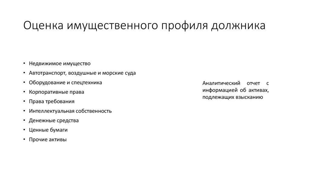 Оценка имущественного профиля должника• Недвижимое имущество