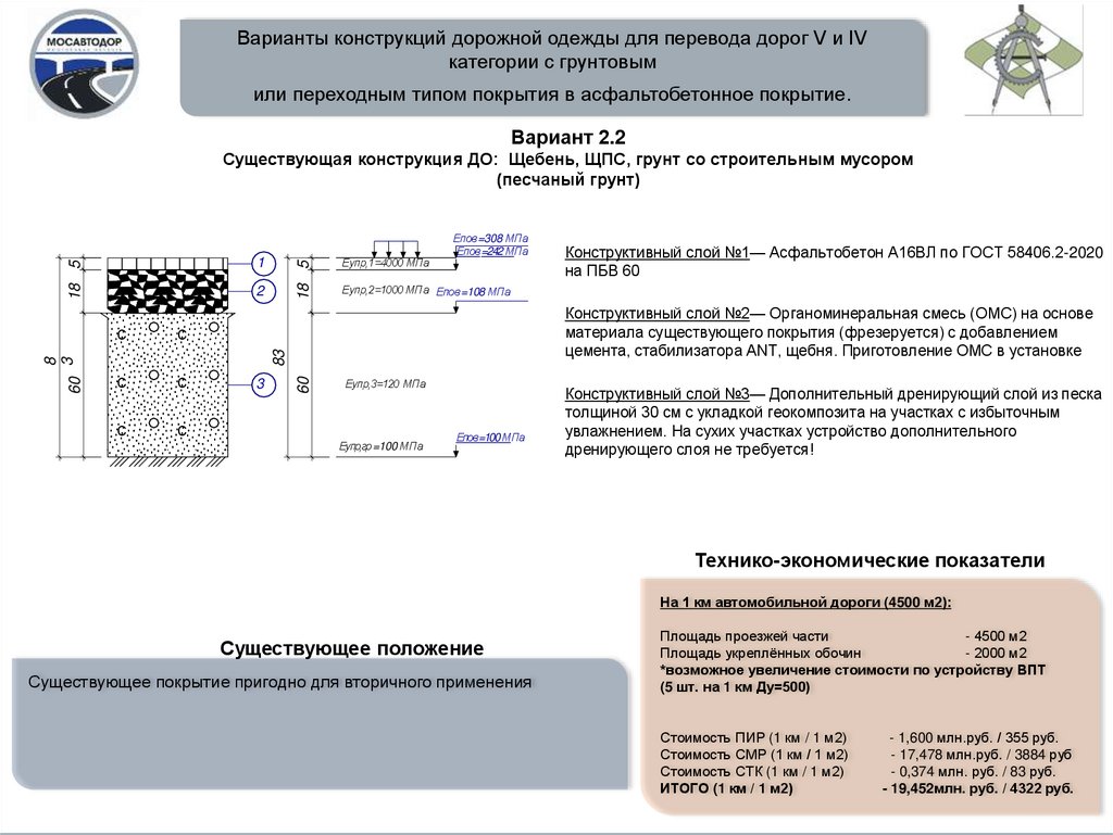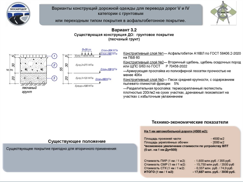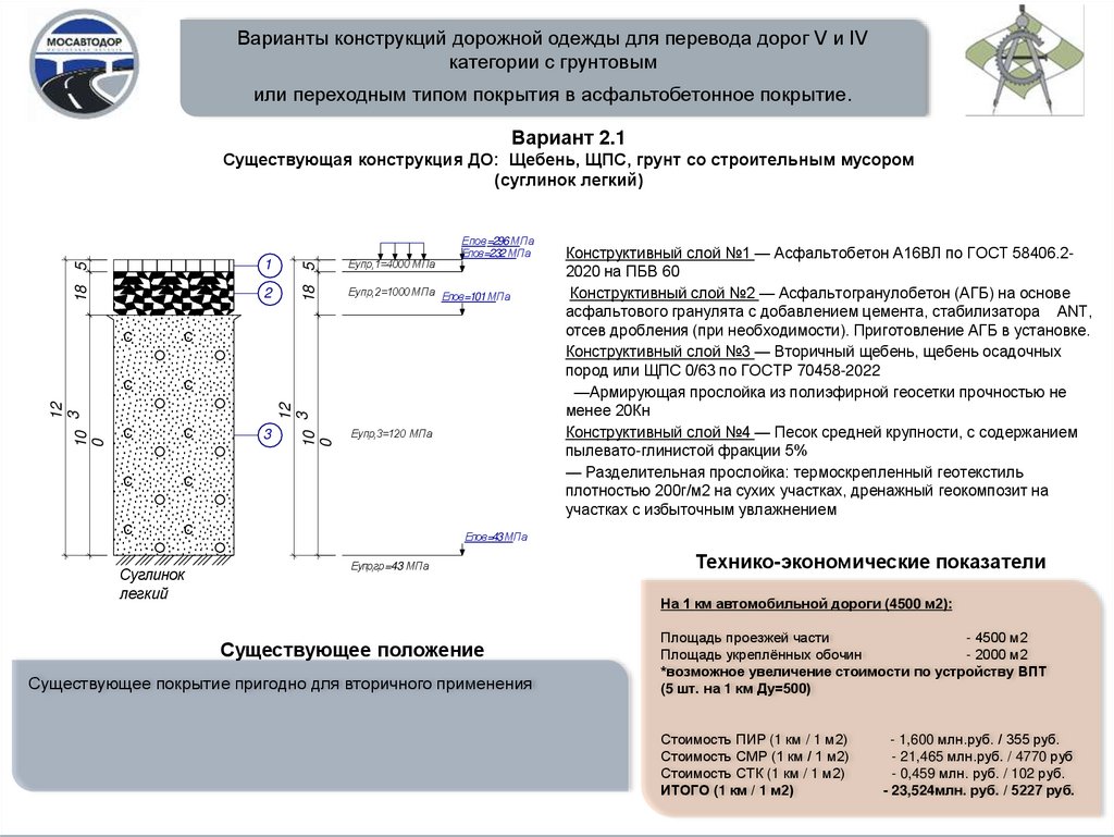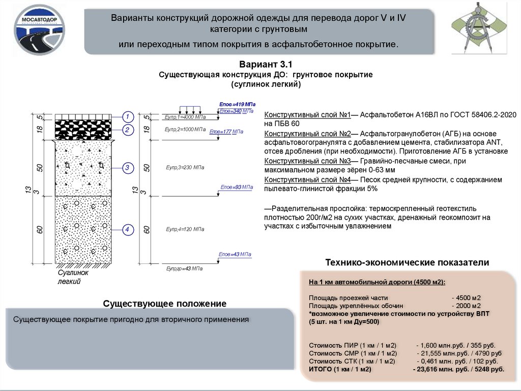 Варианты конструкций дорожной одежды для перевода дорог V и IVкатегории с грунтовым