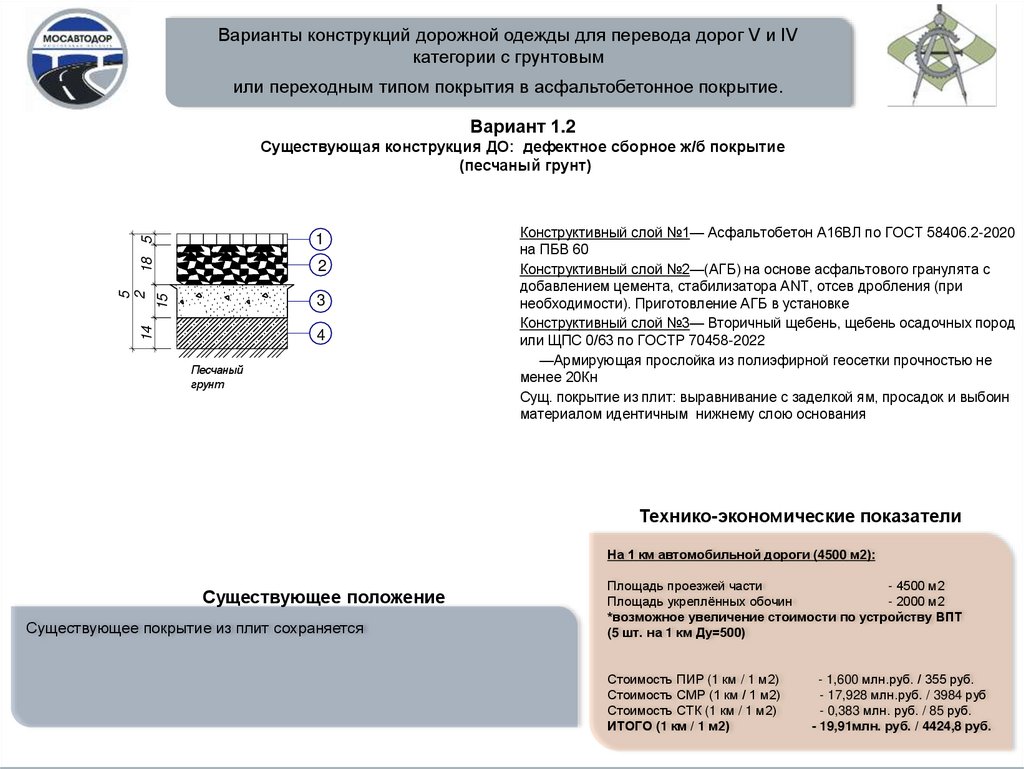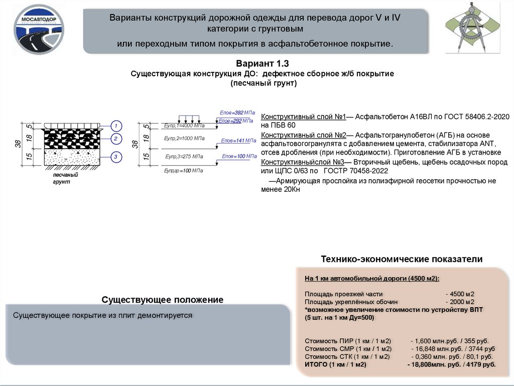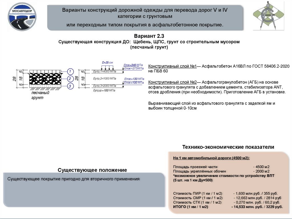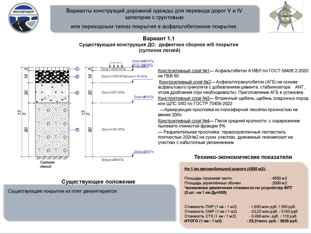 Варианты конструкций дорожной одежды для перевода дорог V и IVкатегории с грунтовым