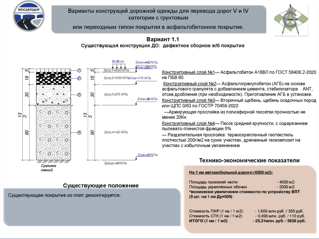 Варианты конструкций дорожной одежды для перевода дорог v и iv категории