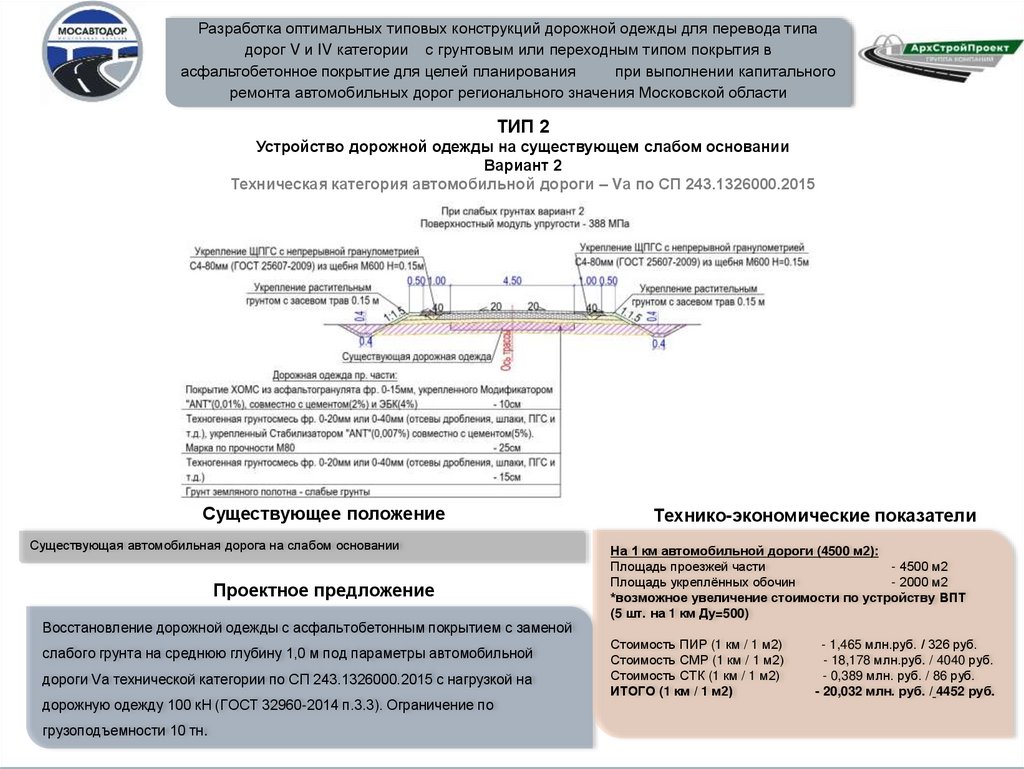 Разработка оптимальных типовых конструкций дорожной одежды для перевода типадорог V и IV категории с грунтовым или переходным типом покрытия в
