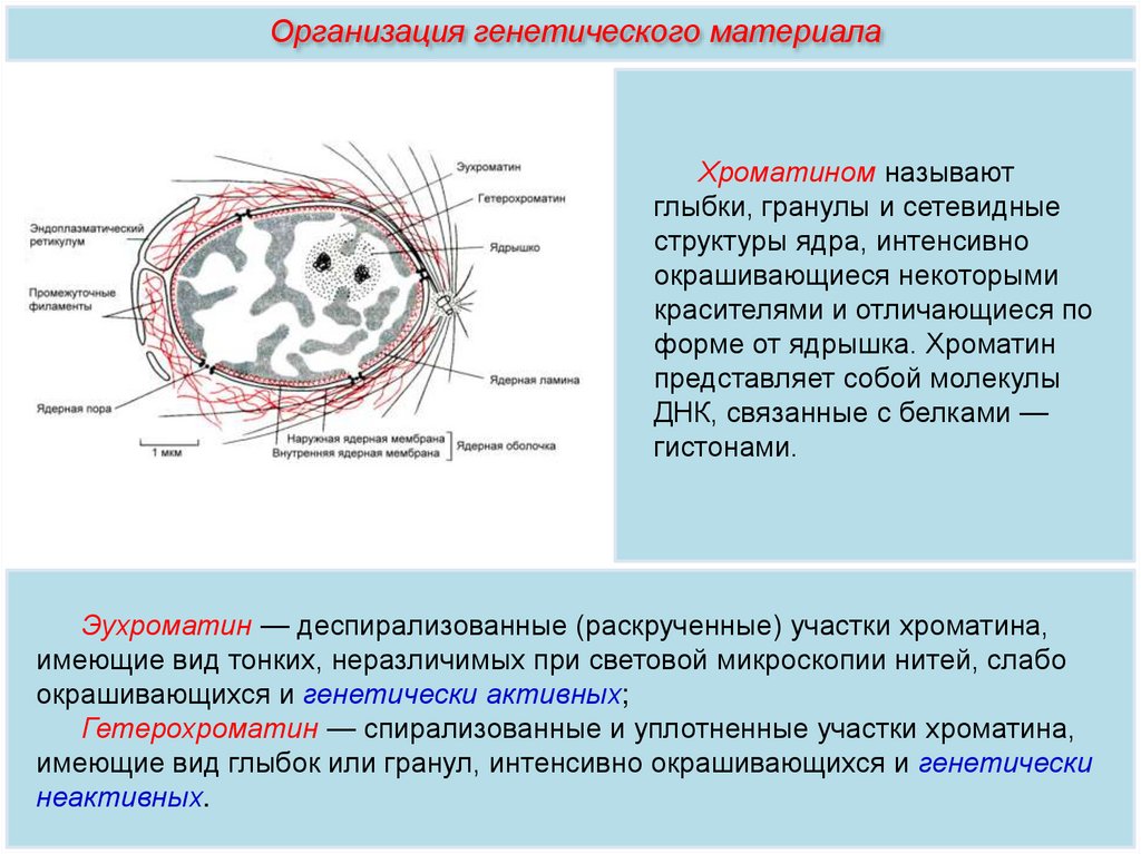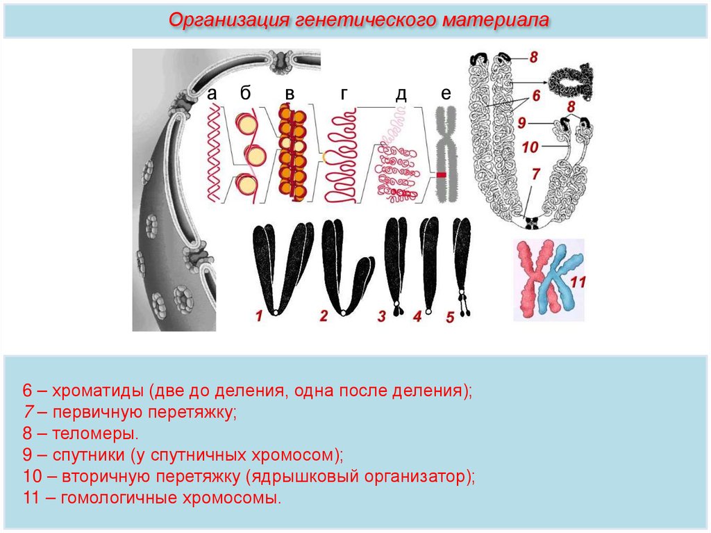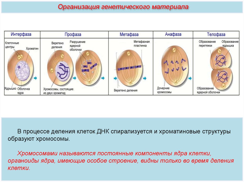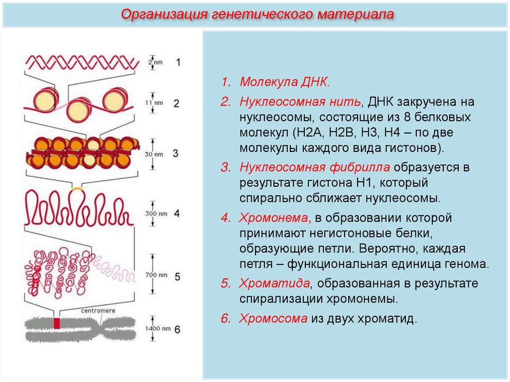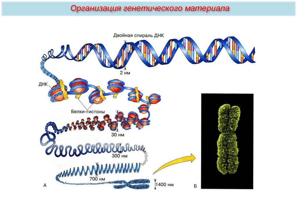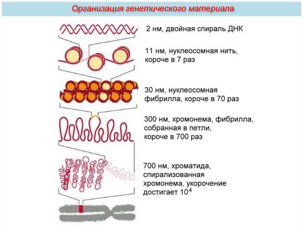 Организация генетического материалаВ процессе деления клеток ДНК спирализуется и хроматиновые структуры