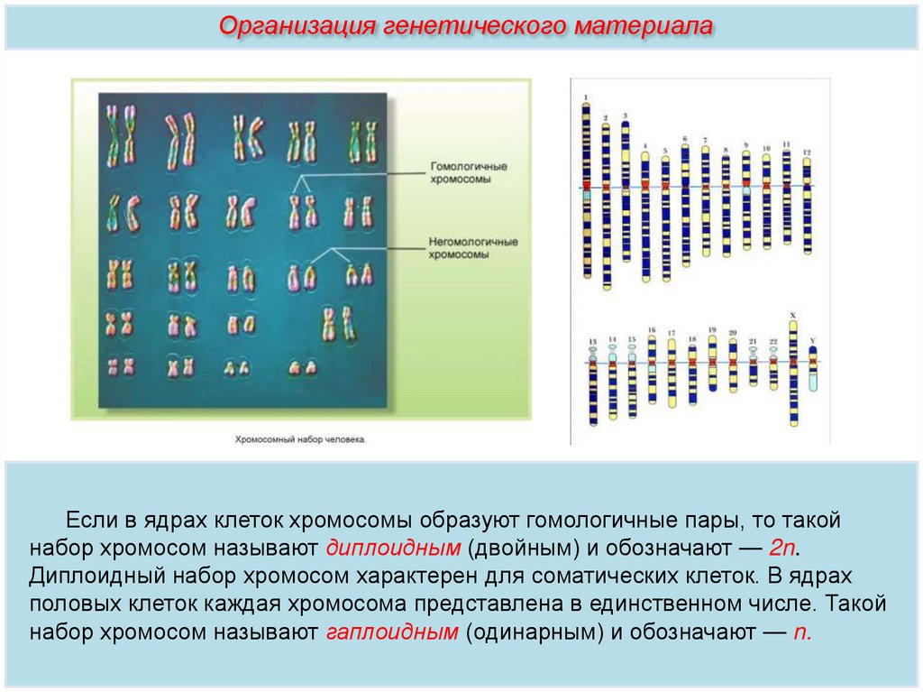 Организация генетического материалаЕсли в ядрах клеток хромосомы образуют гомологичные пары, то такой