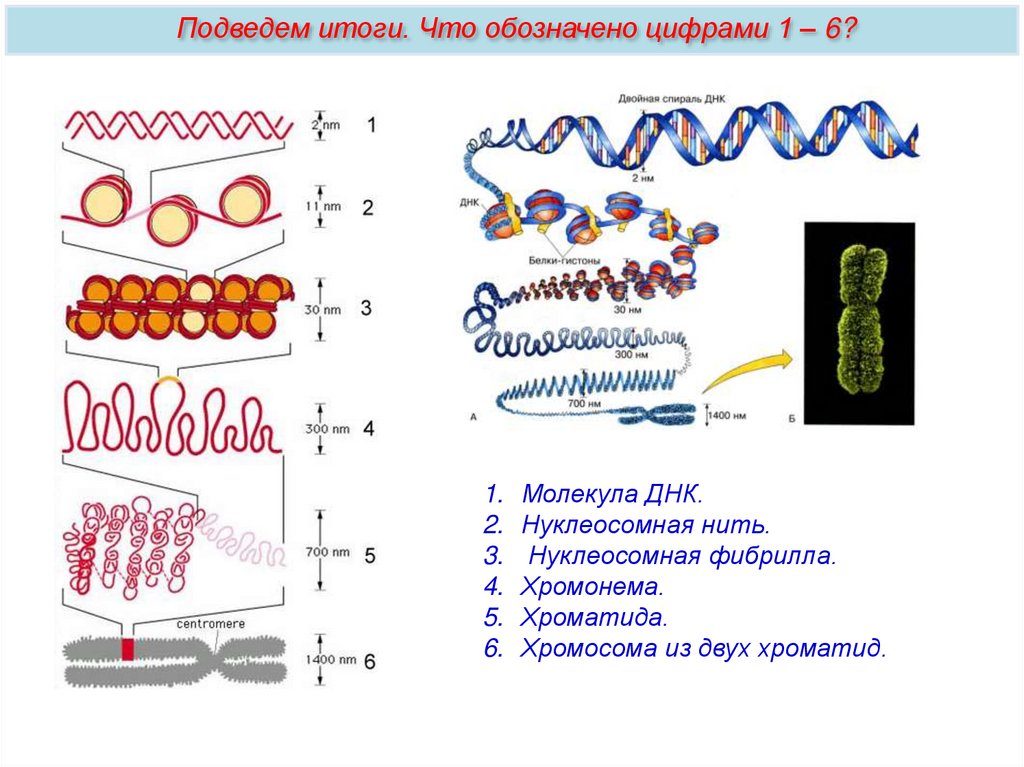 Подведем итоги. Что обозначено цифрами 1 – 6?1. Молекула ДНК.
