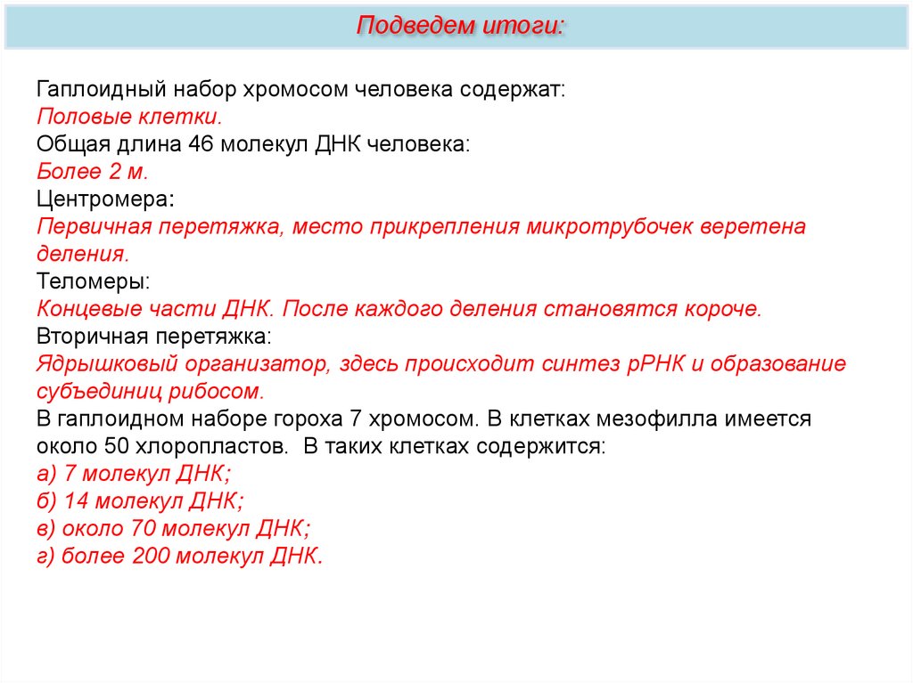 Подведем итоги:Гаплоидный набор хромосом человека содержат: