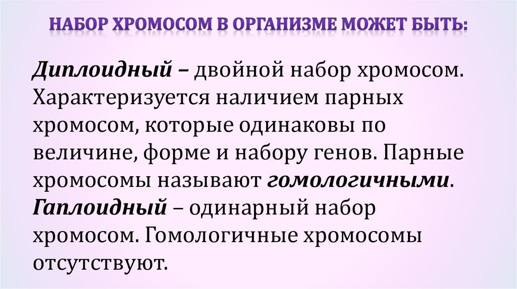 хромосом, а также по набору