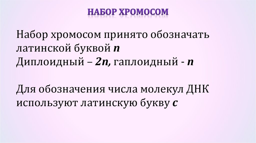 Набор хромосом принято обозначатьлатинской буквой n