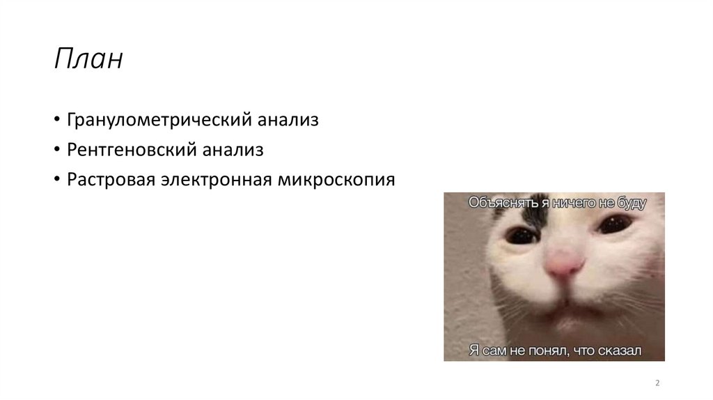 План• Гранулометрический анализ