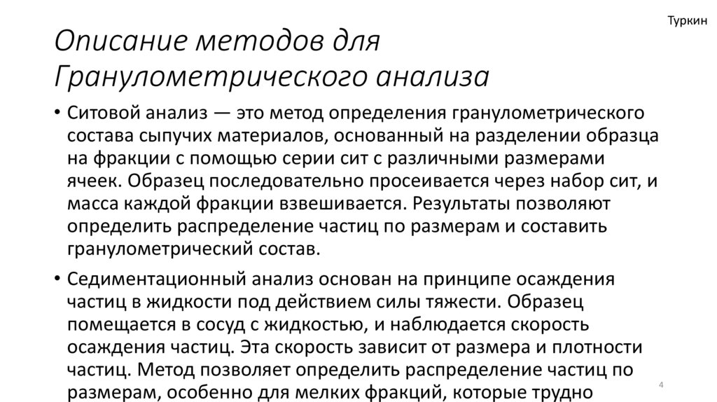 Описание методов дляГранулометрического анализа