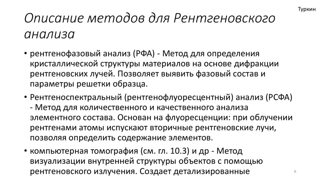 Описание методов для Рентгеновскогоанализа