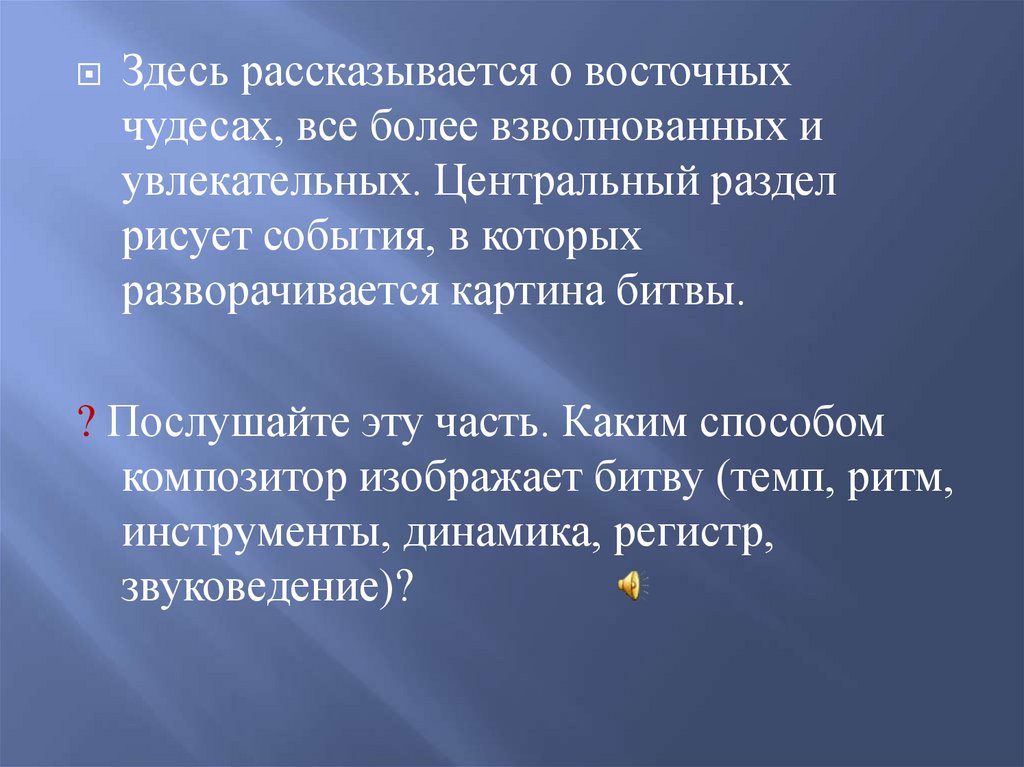 Следующая часть в сюите«Шехеразада» - «Рассказ