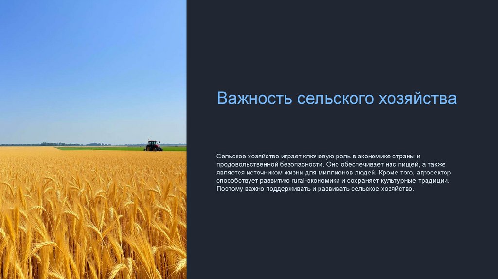 Важность сельского хозяйстваСельское хозяйство играет ключевую роль в экономике страны и