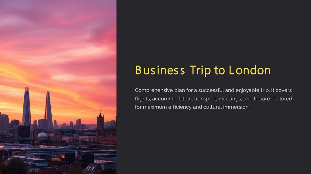 B us ines s Trip to L ondonComprehensive plan for a successful and enjoyable trip. It covers
