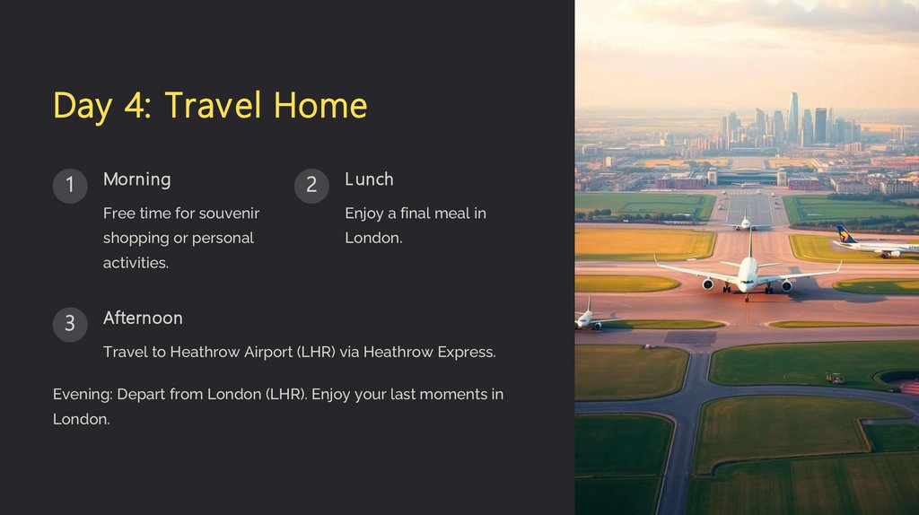 Travel to Heathrow Airport (LHR) via Heathrow Express.