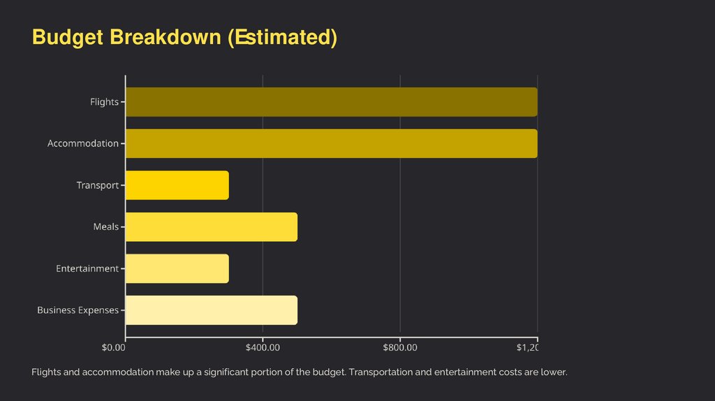 Budget Breakdown (Estimated)Flights and accommodation make up a significant portion of the budget. Transportation and entertainment costs are lower.