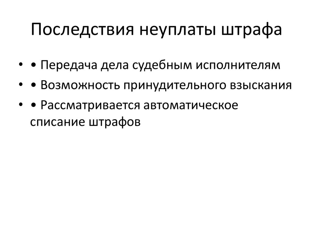 Последствия неуплаты штрафа• • Передача дела судебным исполнителям