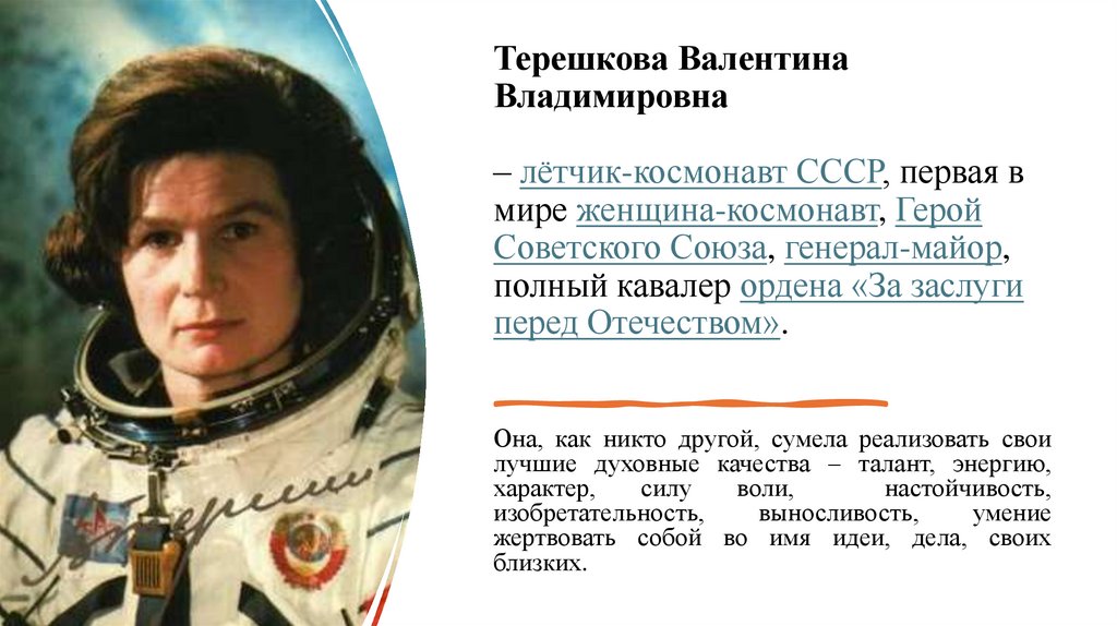 мире женщина-космонавт, Герой