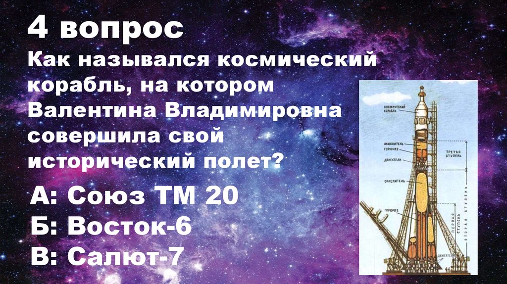 4 вопросКак назывался космический