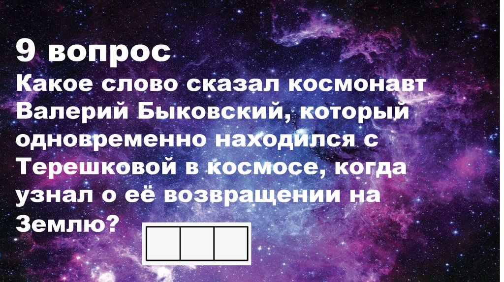 9 вопросКакое слово сказал космонавт