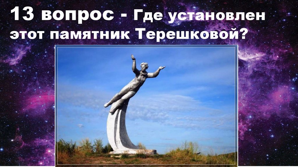 13 вопрос - Где установленэтот памятник Терешковой?