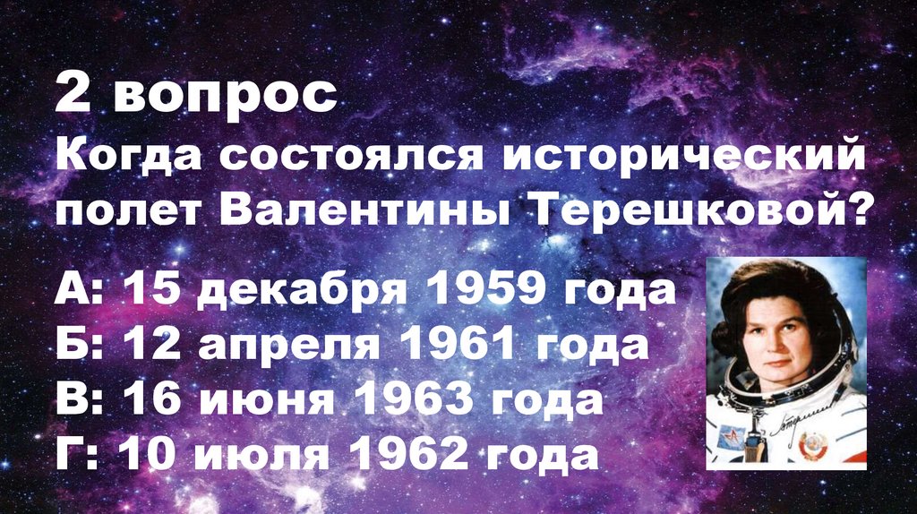 полет Валентины Терешковой?