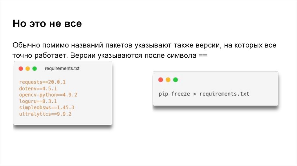 Но это не всеОбычно помимо названий пакетов указывают также версии, на которых все