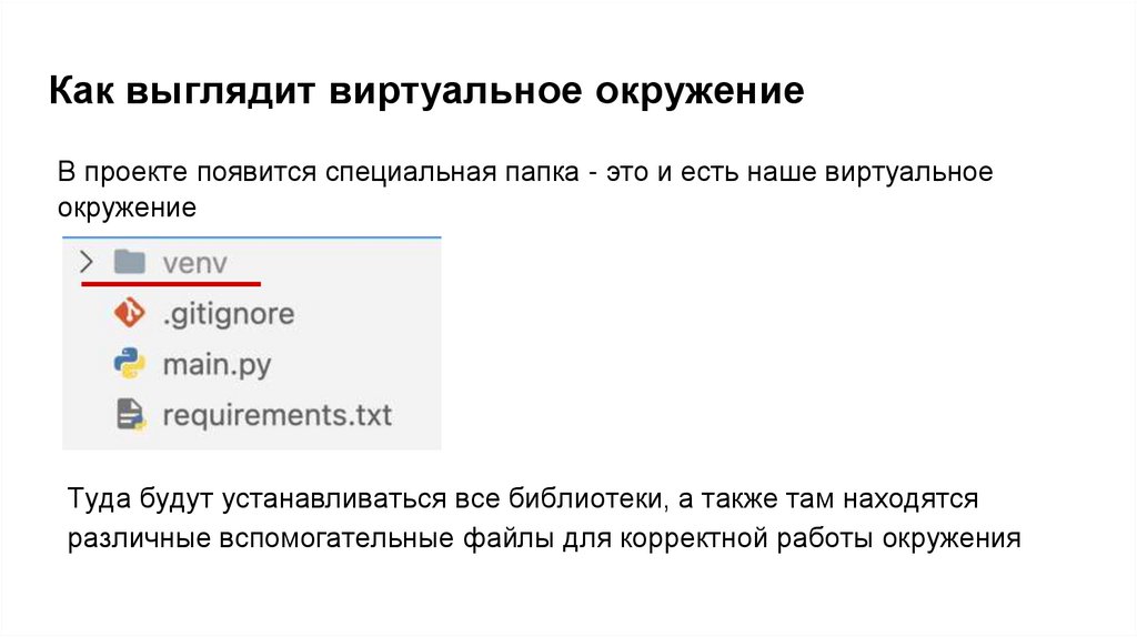 Как выглядит виртуальное окружениеВ проекте появится специальная папка - это и есть наше виртуальное