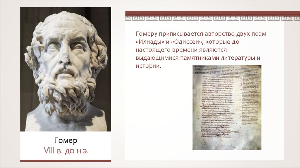 Гомеру приписывается авторство двух поэм«Илиады» и «Одиссеи», которые до