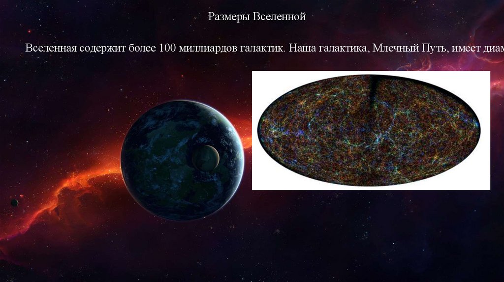 Размеры ВселеннойВселенная содержит более 100 миллиардов галактик. Наша галактика, Млечный Путь, имеет диам