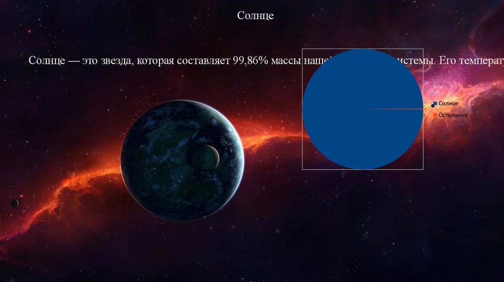 СолнцеСолнце — это звезда, которая составляет 99,86% массы нашей солнечной системы. Его температу