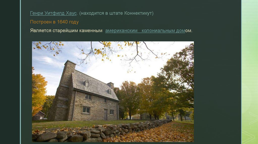 Генри Уитфилд Хаус. (находится в штате Коннектикут)Построен в 1640 году