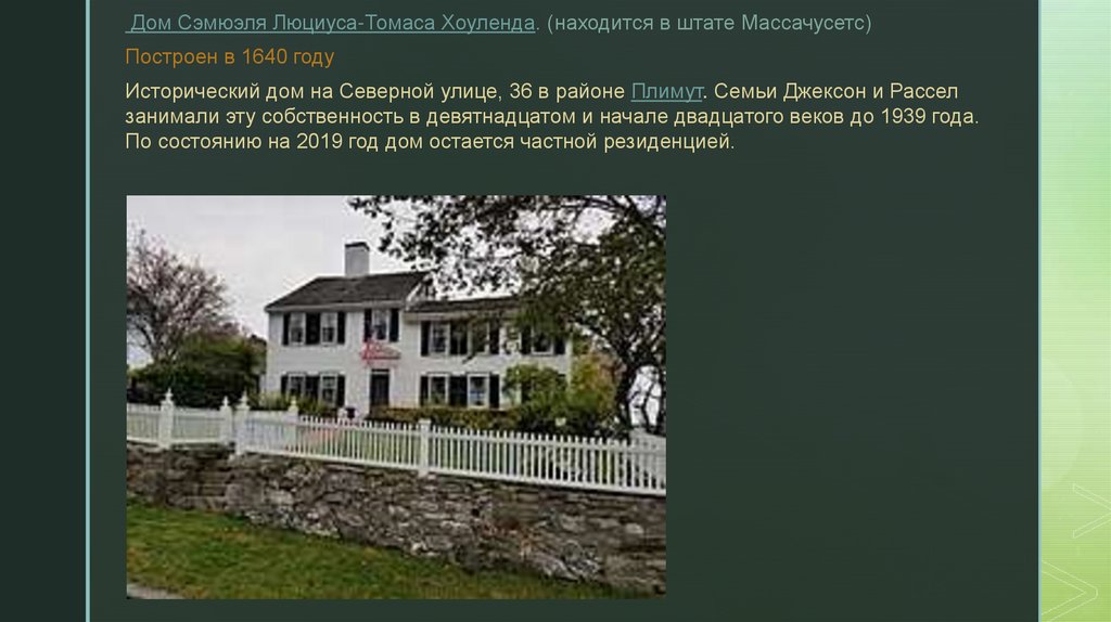 Исторический дом на Северной улице, 36 в районе Плимут. Семьи Джексон и Рассел