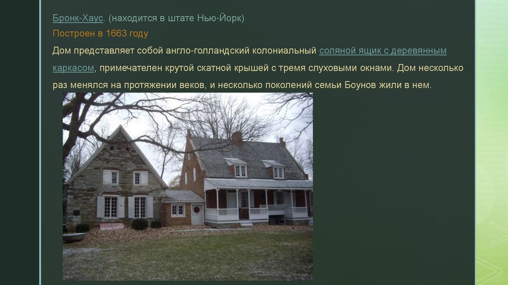 Бронк-Хаус. (находится в штате Нью-Йорк)Построен в 1663 году