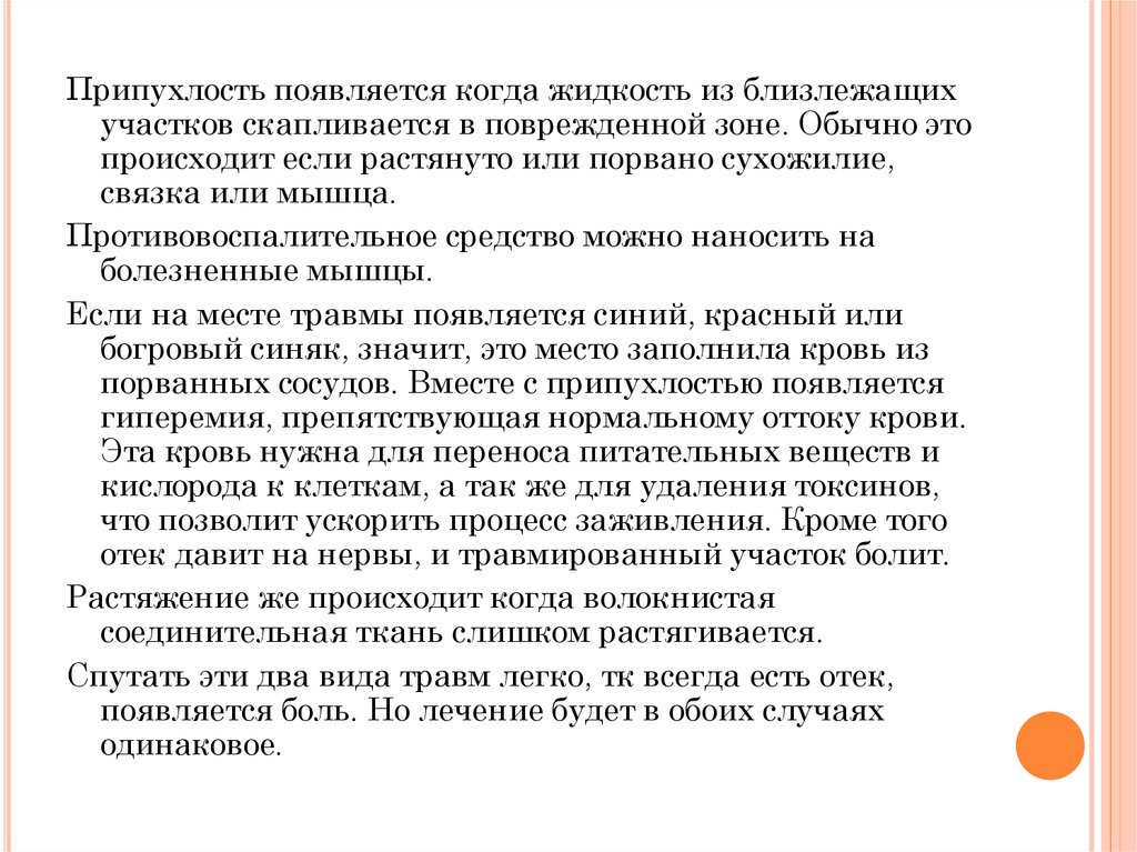Припухлость появляется когда жидкость из близлежащихучастков скапливается в поврежденной зоне. Обычно это