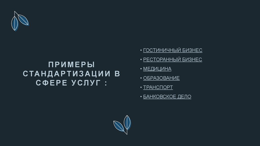 В И Д Ы С ТА Н Д А Р Т О В ВСФЕРЕ УСЛУГ: