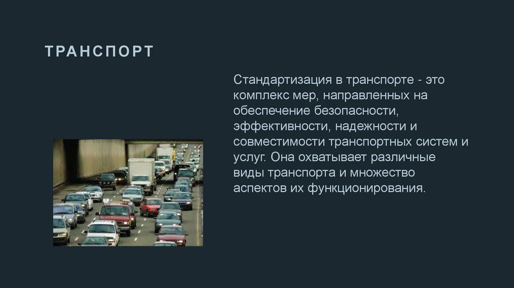 Т РА Н С П О Р ТСтандартизация в транспорте - это