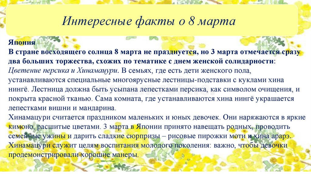 Интересные факты о 8 мартаЯпония
