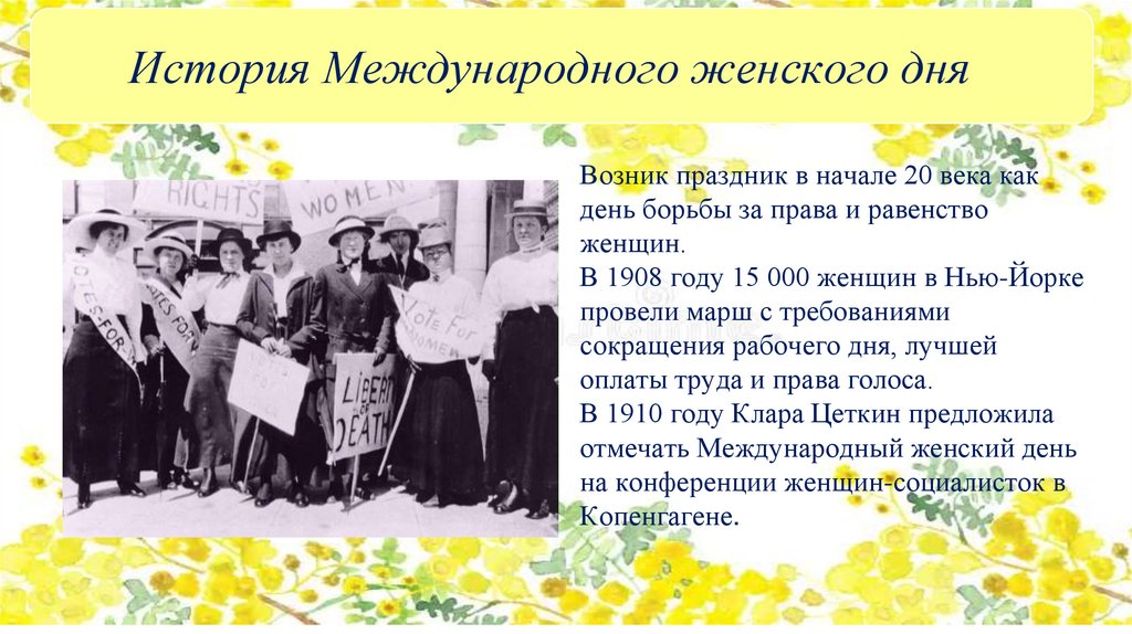 История Международного женского дняВозник праздник в начале 20 века как