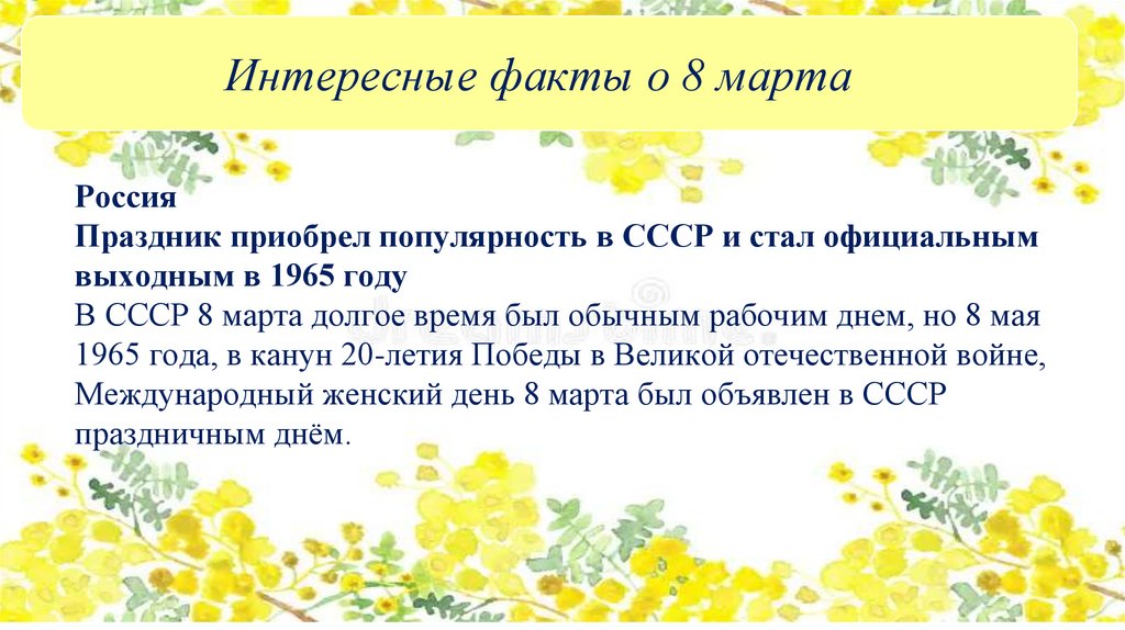 Интересные факты о 8 мартаРоссия