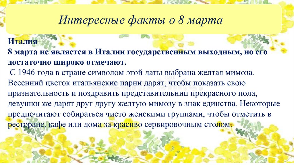 Интересные факты о 8 мартаИталия