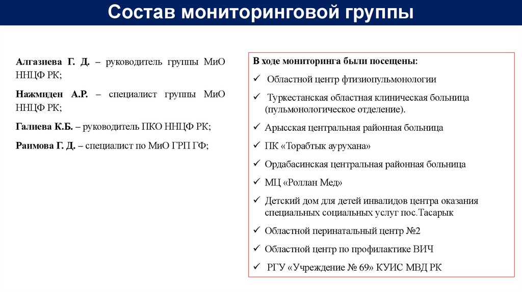 Состав мониторинговой группыАлгазиева Г. Д. – руководитель группы МиО