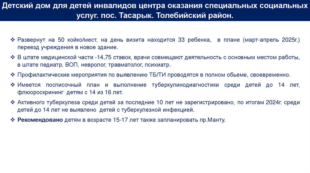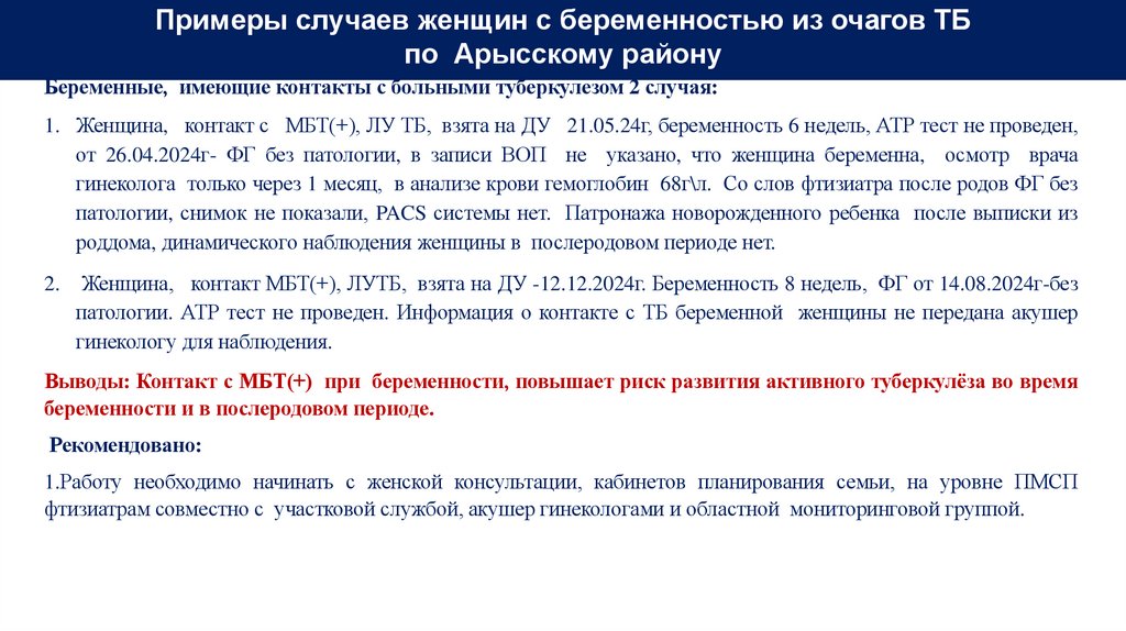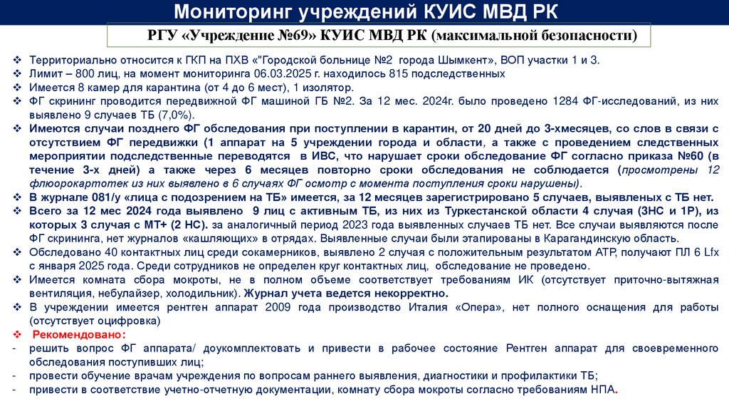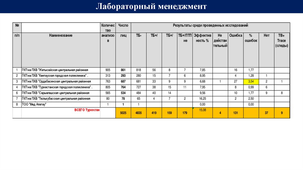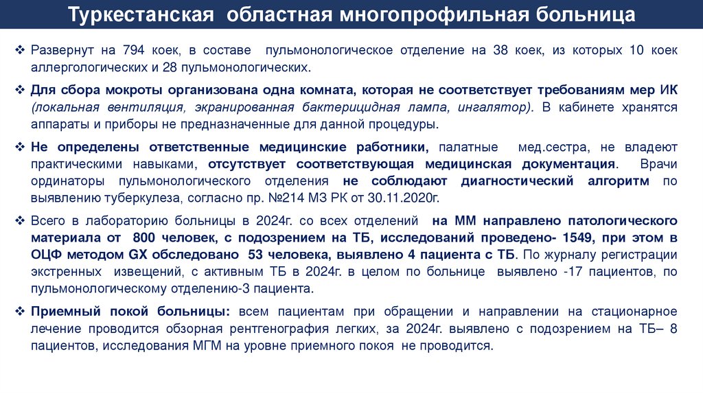 Итоги МиО реализации противотуберкулезных мероприятий по Туркестанской области