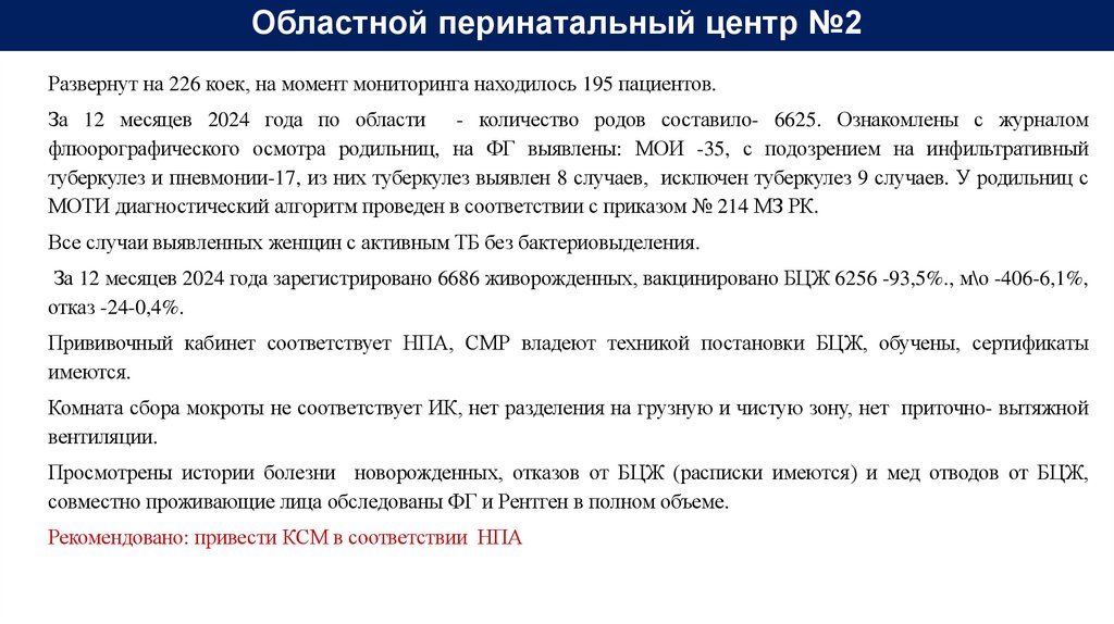 РГП на ПХВ «Национальный научный центр фтизиопульмонологии РК» МЗ РКИтоги МиО реализации