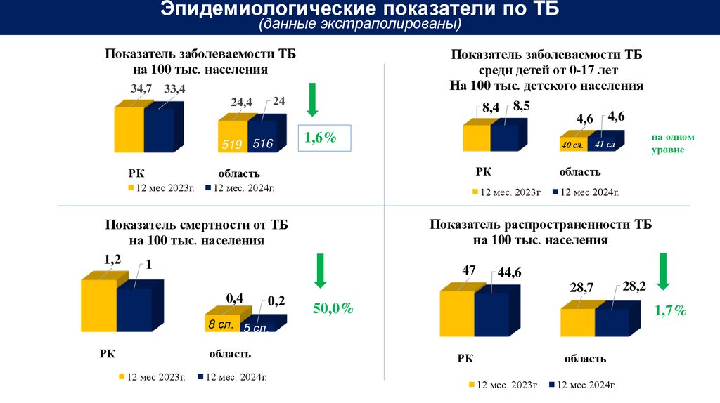 Эпидемиологические показатели по ТБ(данные экстраполированы)