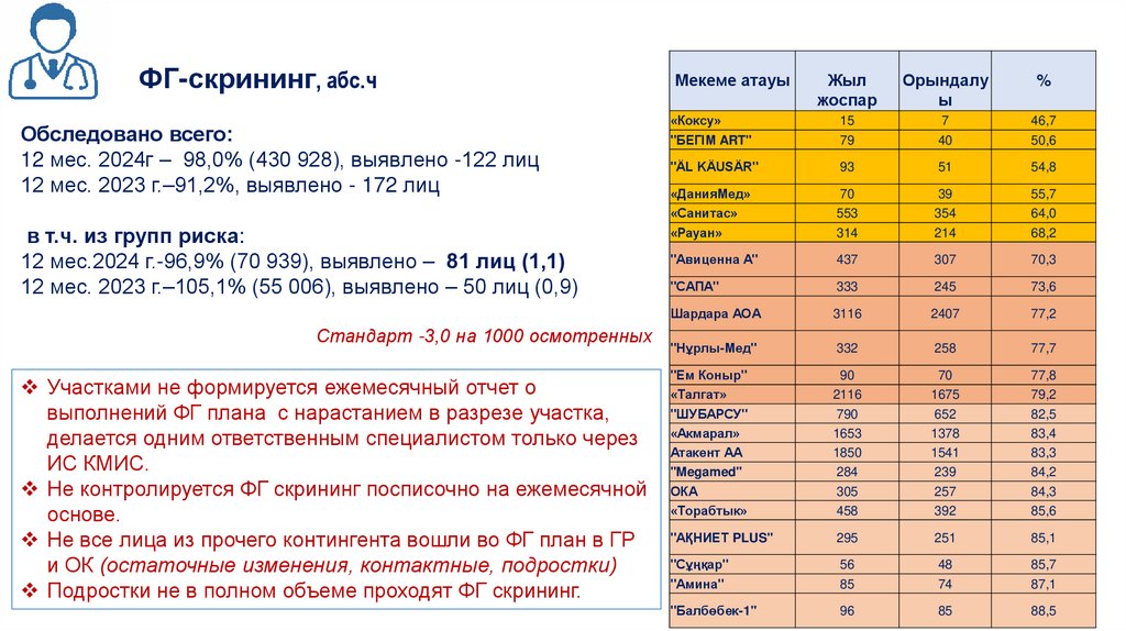 8. Проводить мониторинг выполнение плана Манту по списочно в разрезе участков