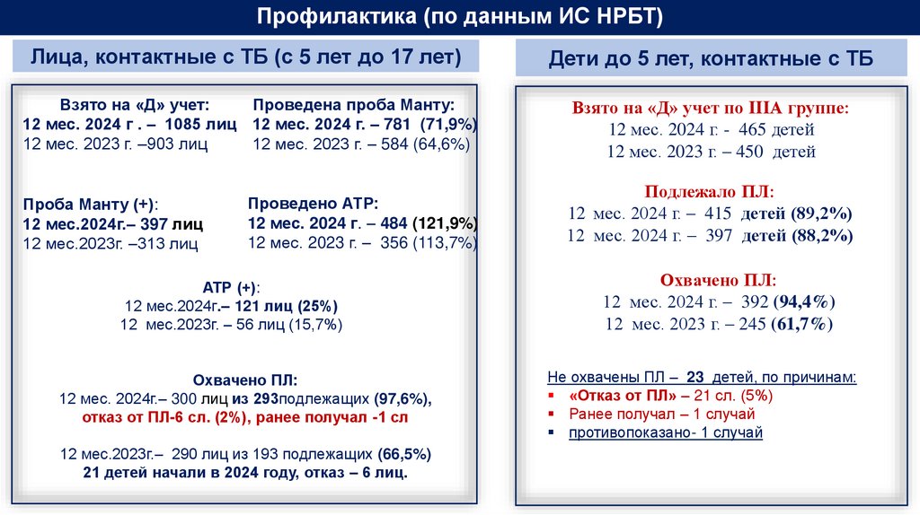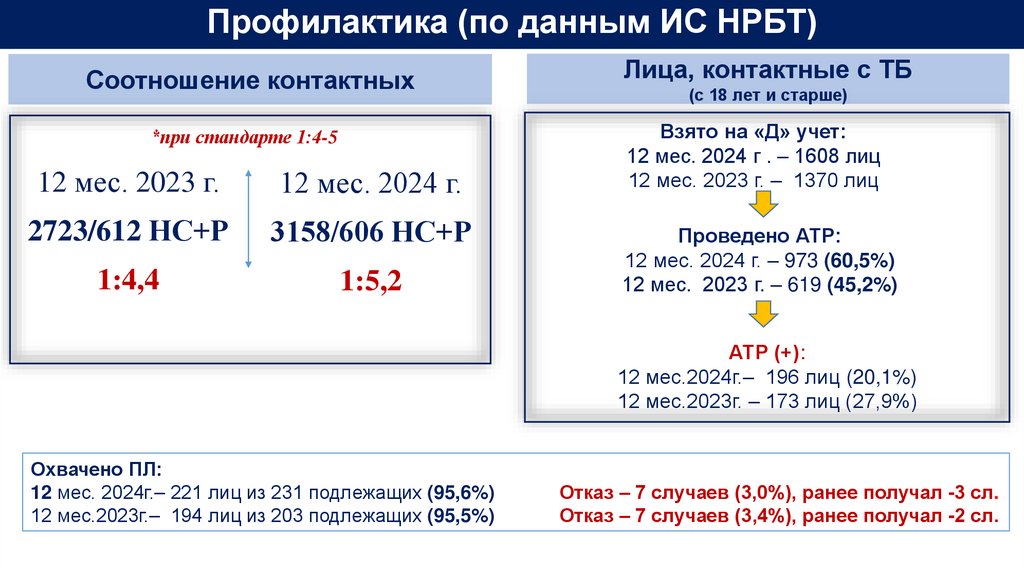 Профилактическая работа в очагах ТБ, среди группы риска проводится, но требует дальнейшего совершенствования.
